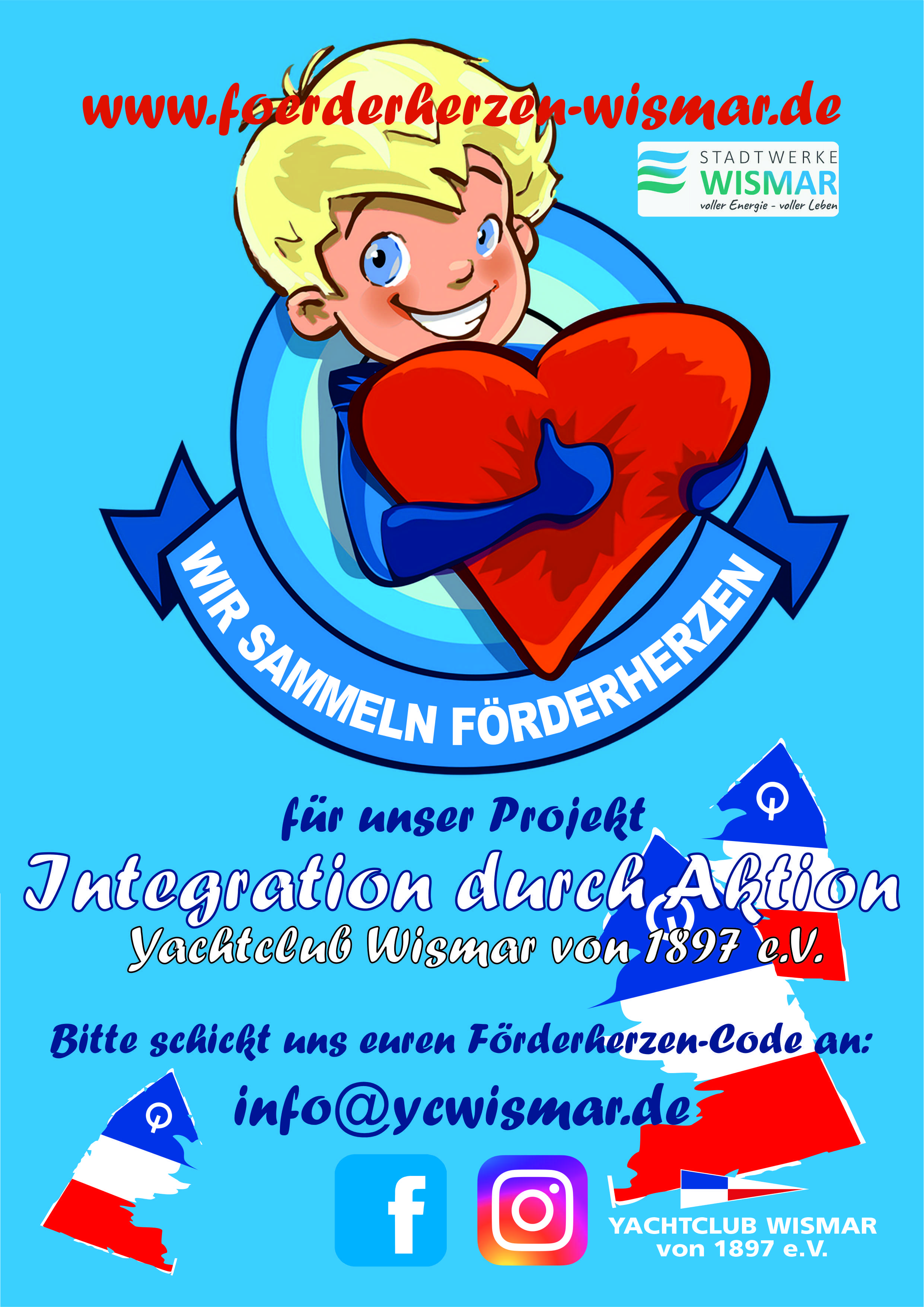 Wählt das Projekt „Integration durch Aktion“ des Yachtclubs Wismar von 1897 e.V. aus und gebt eure Förderherzen unserem Verein.